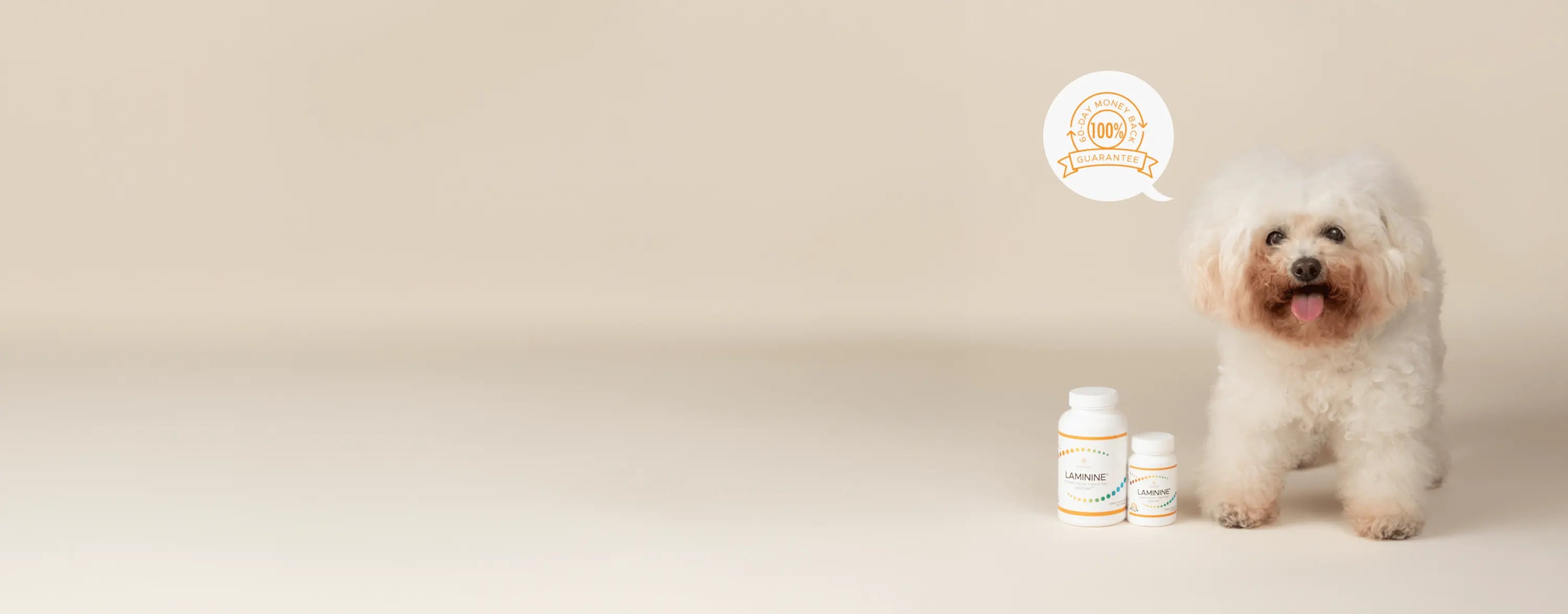Pets taking LAMININE can experience decreased joint pain, improved mobility, more energy, and accelerated healing. It also supports healthier skin, coat, hearing, and eye health. LAMININE works to keep your pet feeling its best by working to extend telomere length and prevent damaged DNA. Slower signs of aging mean your pet can stick around for longer.